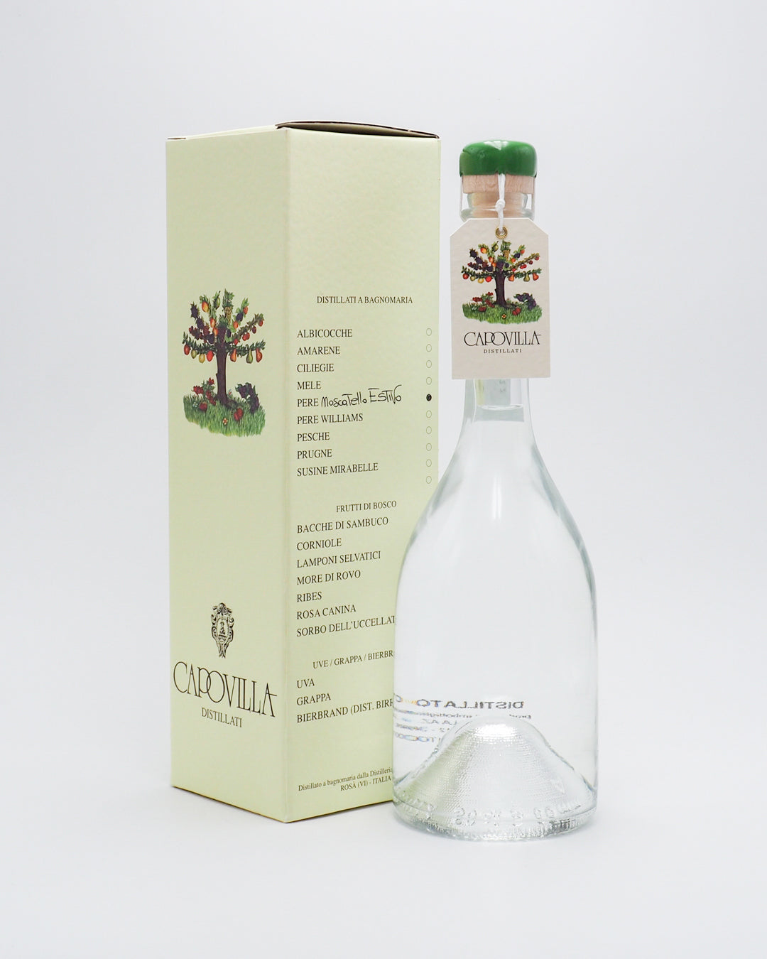 Descrizione: Il distillato di Pere Moscatello Estivo è il risultato dell’esperienza del maestro Capovilla. La sua arte si fonda sulla ricerca costante delle migliori materie prime e sulla valorizzazione di varietà di frutta e bacche spesso dimenticate. Questo distillato puro nasce dalla doppia distillazione in piccoli alambicchi a bagnomaria, in cui vengono conservati gli aromi naturali delle pere.