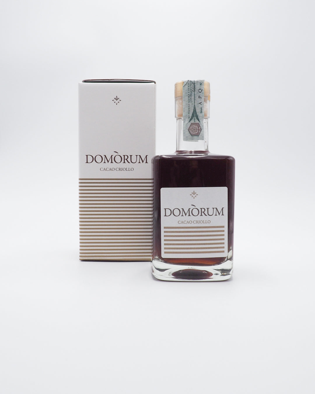 Descrizione: Domòrum è un distillato aromatizzato al Cacao Criollo. Questo particolare distillato è ottenuto per infusione in alcol e ottimo brandy di pregiatissime fave di cacao Criollo, il migliore e più aromatico al mondo. Il risultato è un fine pasto elegante e intenso, consigliamo di provarlo abbinato alle fave di cacao Domori.